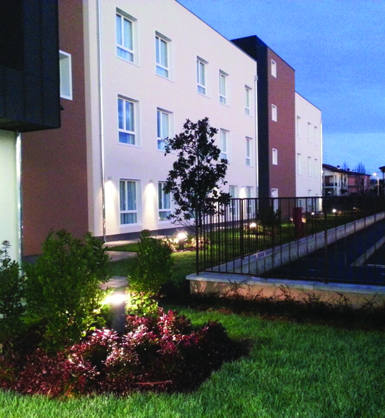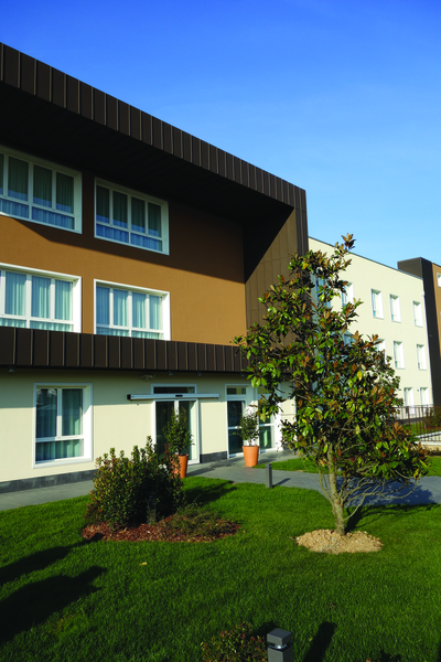 La Residenza si sviluppa su tre livelli, costituiti da un corpo centrale dove sono concentrati le parti comuni e da due ali dove sono disposte le camere, per un complessivo di 100 posti letto. La struttura portante dell’edificio è stata realizzata in legno lamellare, scelta che permette di ridurre al minimo l’impatto ambientale, offrendo allo tesso tempo grande vivibilità e comfort in tutti gli spazi. L’impianto geotermico all’avanguardia garantisce una temperatura costante in ogni stagione, con riciclo d’aria in ogni area e climatizzazione personalizzabile. La gradevolezza e l’ampia superficie degli ambienti a disposizione, nonché una molteplicità di dotazioni tecnologiche, rispondono al meglio alle esigenze degli ospiti e dei loro famigliari